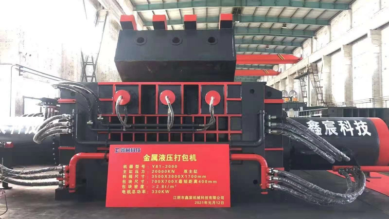 Y81-2000雙主缸型金屬打包液壓機(jī),特別解決了切割船板料、鋼模板等大型重型廢鋼難打包壓縮和包塊密度低的問(wèn)題。